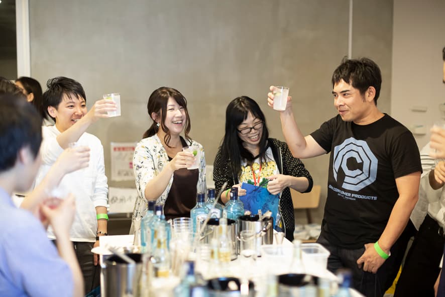 (島田)通常のお酒の席とは違うのは、一緒に参加するアクティビティが設けられているという点です。参加者みんなでジントニックを作るんですが、若者のほうが手先が器用なので、作るのが上手なんですね。年齢関係なく同じテーブルの人同士で作ったカクテルを飲ませ合って、上司のカクテルの味を批判する若手社員とかも出てきて盛り上がるんです(笑)。年齢や役職を越えたコミュニケーションが生まれていく。そのまま真面目な話になったり、どうコミュニケーションが発展するかは参加者のみなさん次第で変わってきます。
