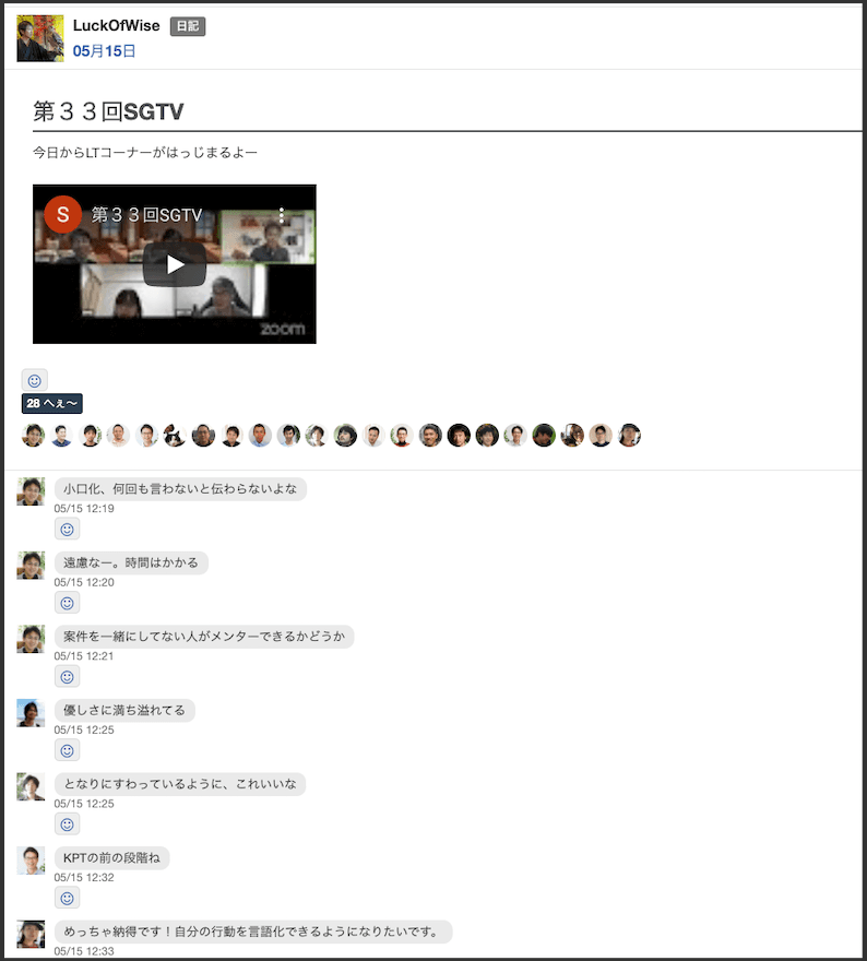 このコミュニケーションはログとして残るので、それがそのまま日報にもなります。だから、「日報を入力して」といちいちリマインドする必要がない。それに、他のメンバーの働き具合が可視化されていることによって、「俺ももっとがんばろう」とか「あのいいやり方真似してみよう」といった形で、自然と成長意欲や相互支援が生まれます。