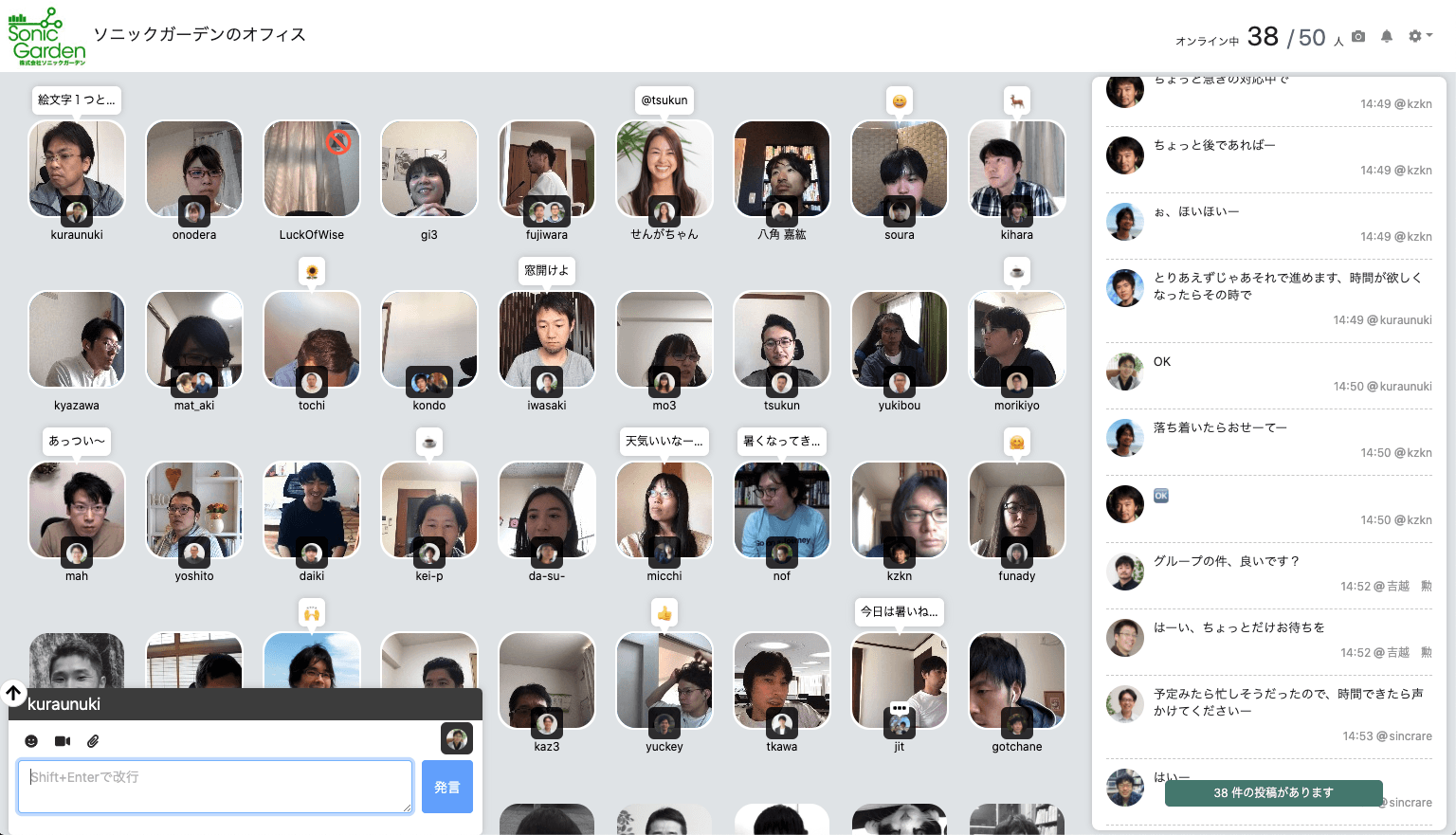 自社製品である仮想オフィスツール「remotty」を使い、リモートでも何気ない雑談や軽い声かけが生まれるようにしている