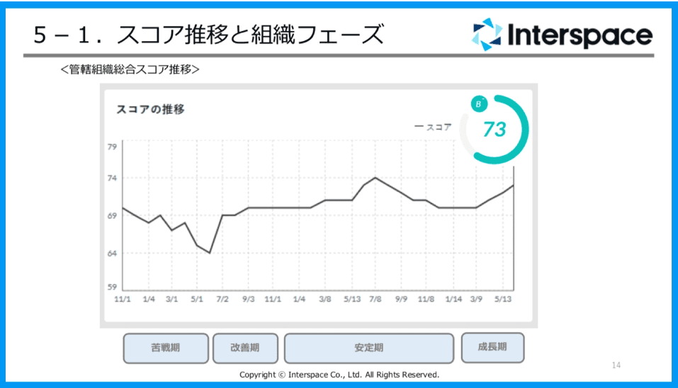 というのも、こういった組織作りにおける全体整理と傾向理解をしておかないと、スコアの上下に一喜一憂し、踊らされてしまいます。