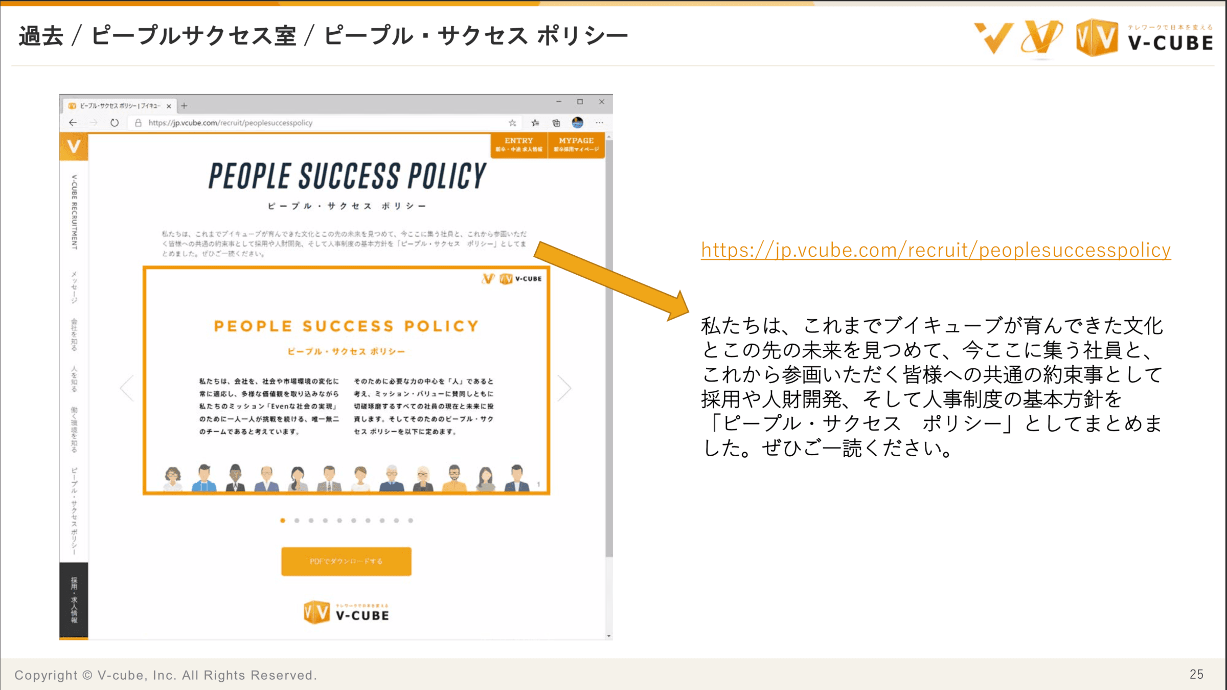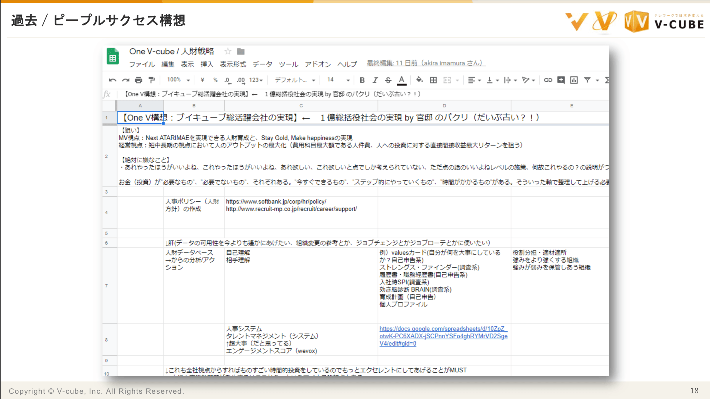また、「One V-cube」の現在最終版をご紹介します。当然のことながら事ある毎に全社にこの内容は言葉で伝えています。