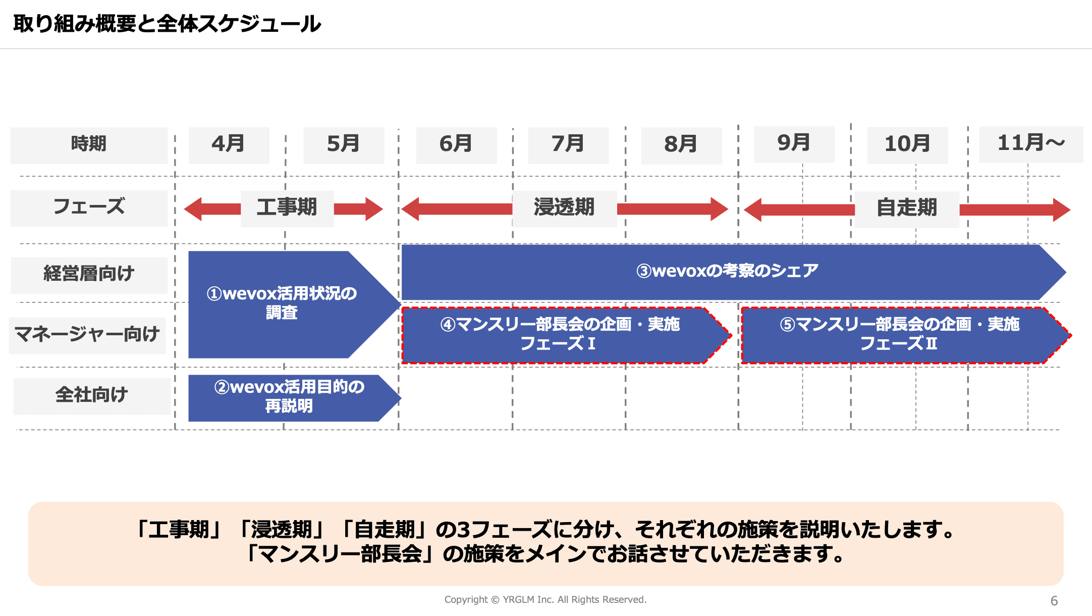 「工事期」「浸透期」「自走期」3つのフェーズでwevoxの活用を実現!