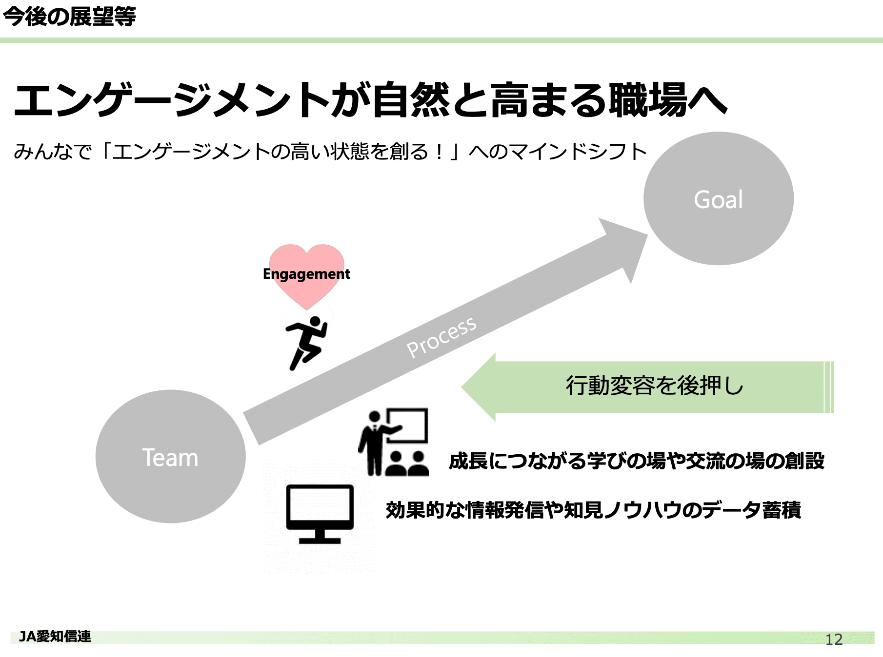 ―本日のテーマは「エンゲージメントを組織に広めるための活動事例〜JA愛知信連の1年間の挑戦〜」です。どうぞよろしくお願いいたします。