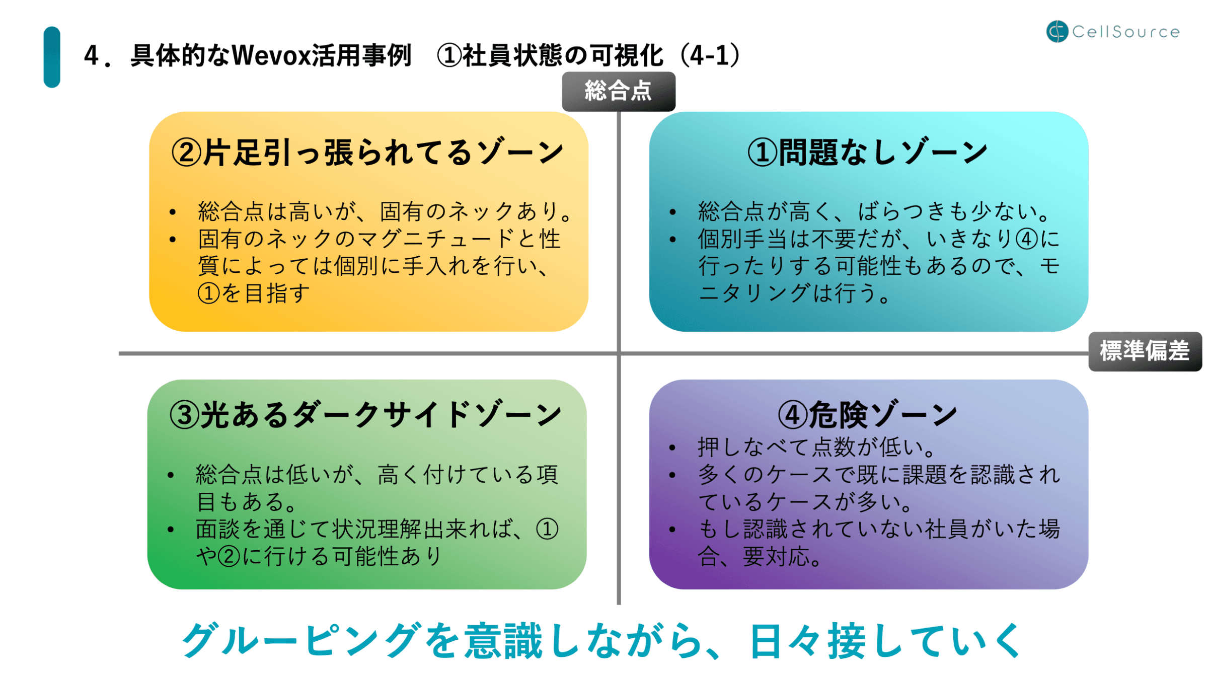 社員を4つのゾーンに分けてモニタリング