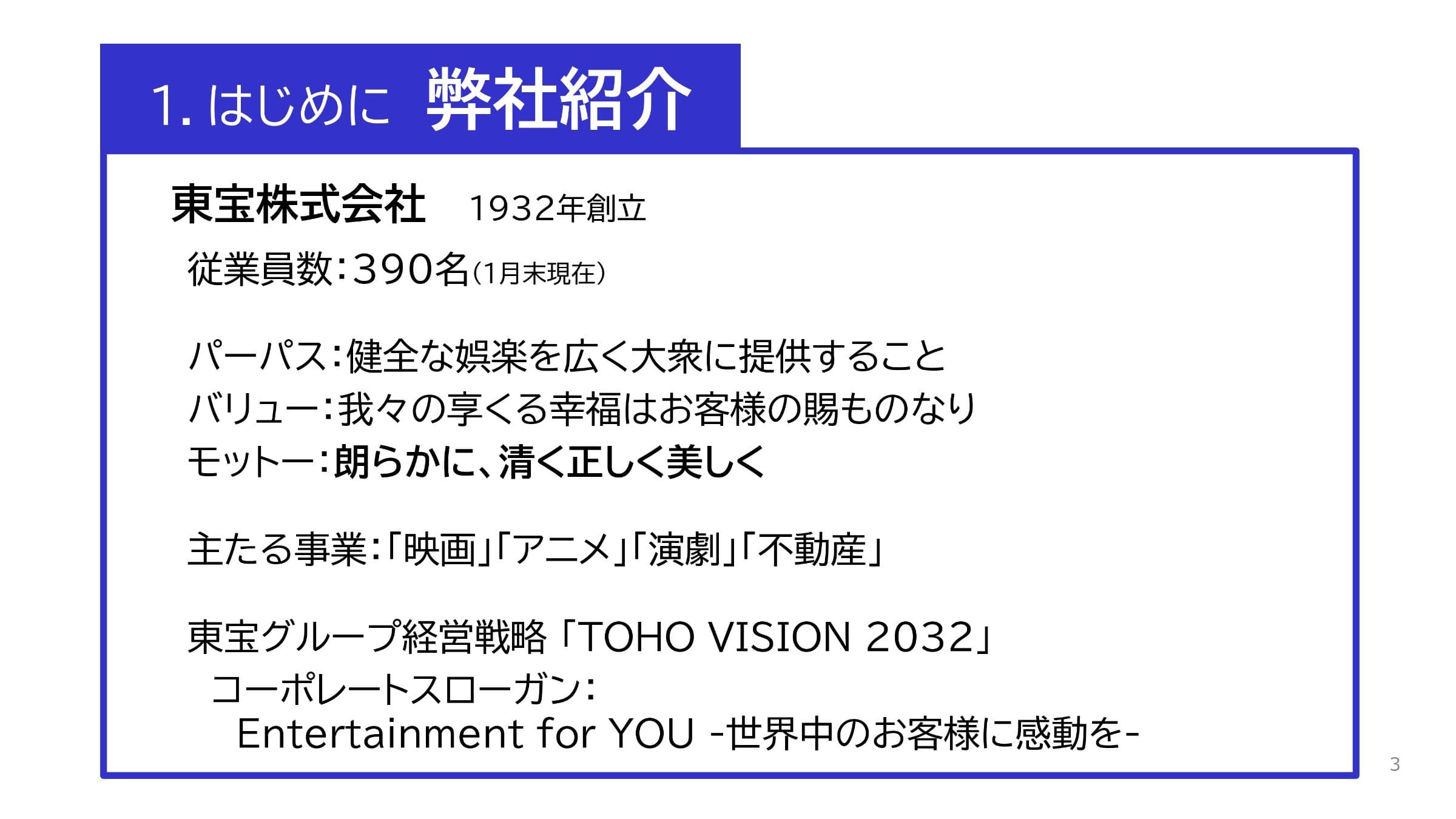 本日のテーマは『「東宝」という組織にエンゲージメント文化の種を蒔いた一年間の軌跡』です。どうぞよろしくお願いいたします。