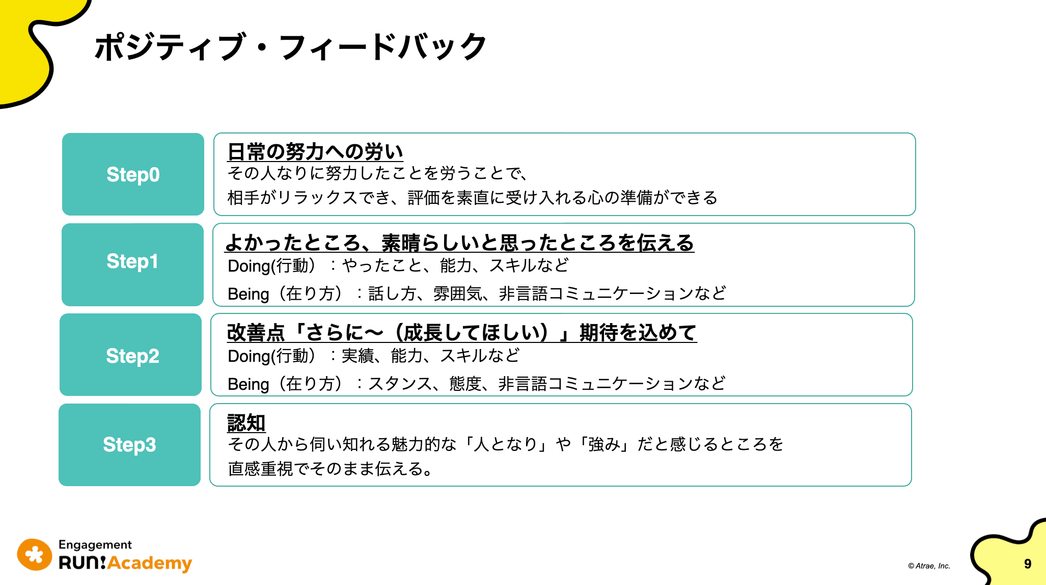 ポジティブ・フィードバックで、既に実践していることをまずは讃える