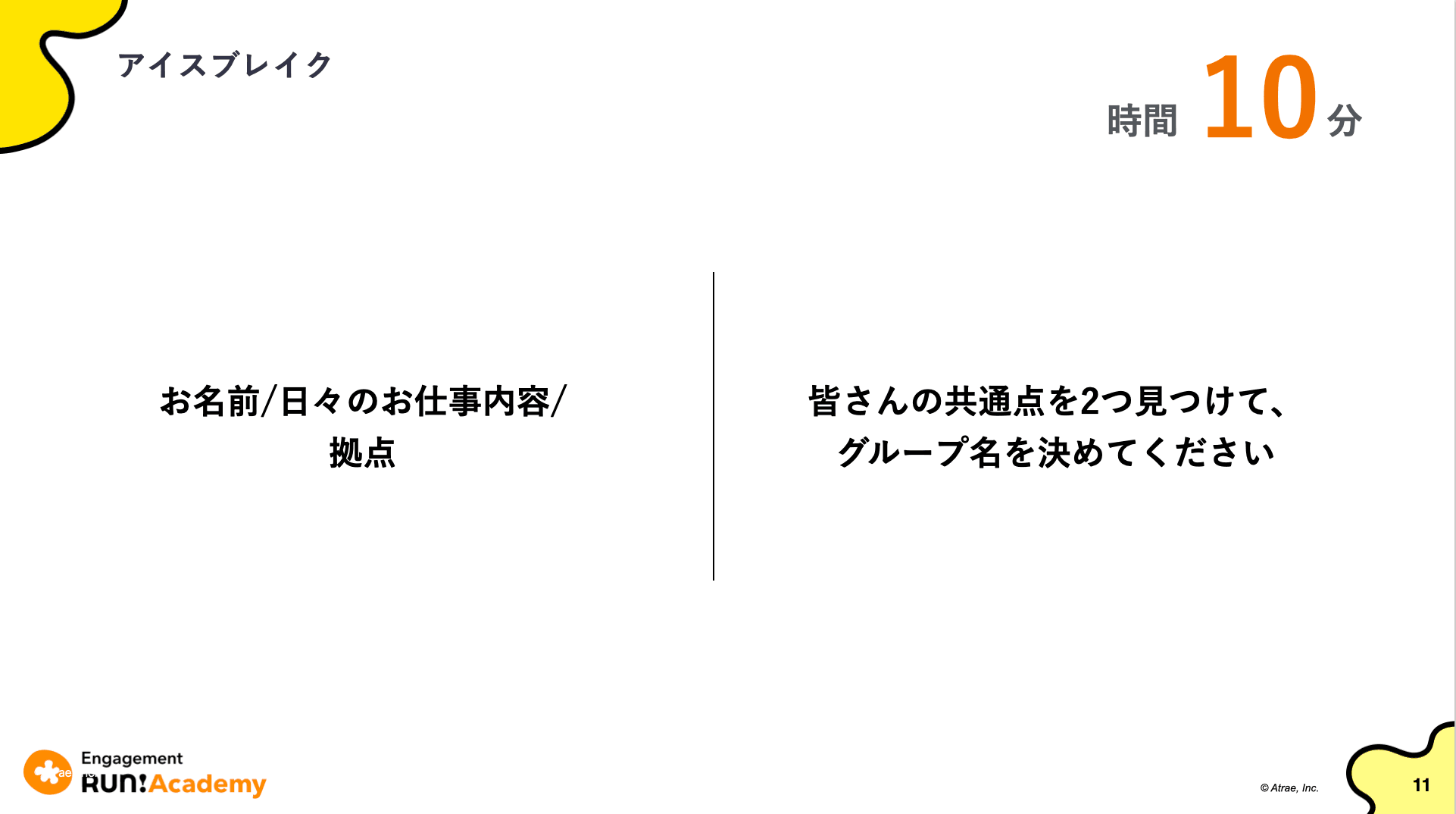 岡山拠点の株式会社林原の皆様は、Engagement Run!Academyにも多数ご参加されており、卒業生の皆様も含め、講師の新家や他Engagement Run!Academyメンバーとも初対面!名刺交換をされたり、「ようやくお会いできましたね!」という和やかなやりとりから、ユーザー会がスタートしました!まずは、ユーザー会の趣旨や会の流れを新家よりご紹介しました。