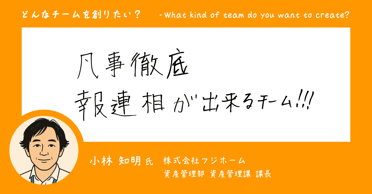 小林: 私は、密にコミュニケーションをとれていて、活気があることが良いチームの条件だと感じます。そのためにも、まずは「報連相」の徹底が大事である、という気持ちです。