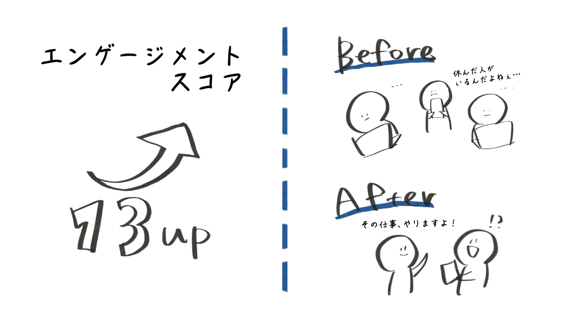 小林: 課のエンゲージメントスコアは13ポイント上がりました。ですが、途中でメンバーの変更があったのも理由だと考えており、正直まだまだ発展途上だと思っています。