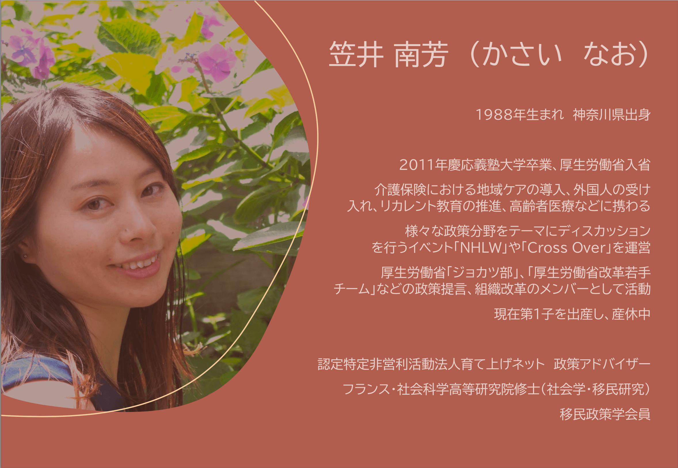 2011年厚生労働省入省。介護保険における地域包括ケアの導入、外国人材の受け入れ、リカレント教育の推進、高齢者医療などに携わる。現在、データヘルス改革やマイナンバー利活用など、厚生労働分野の情報化を担当。
