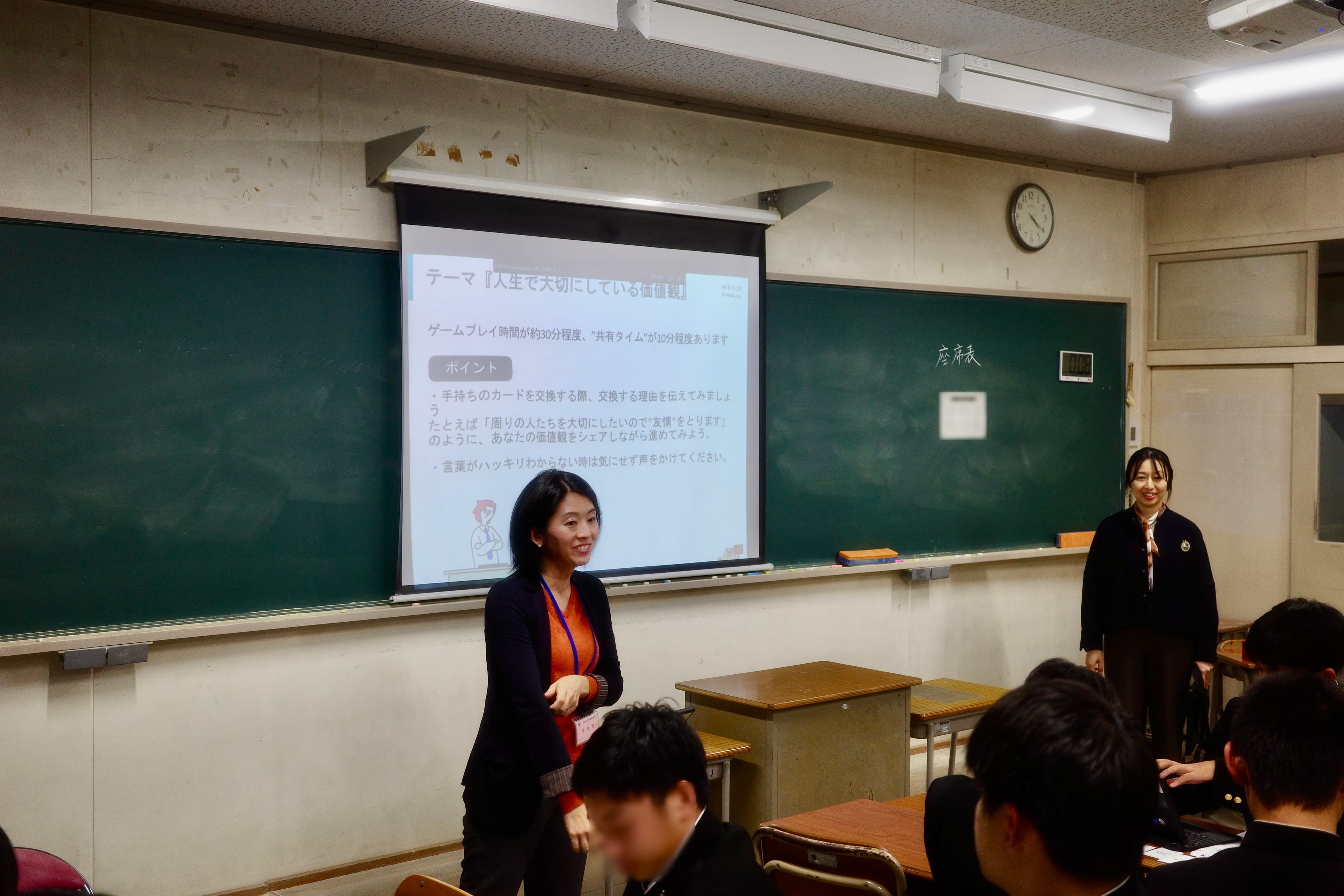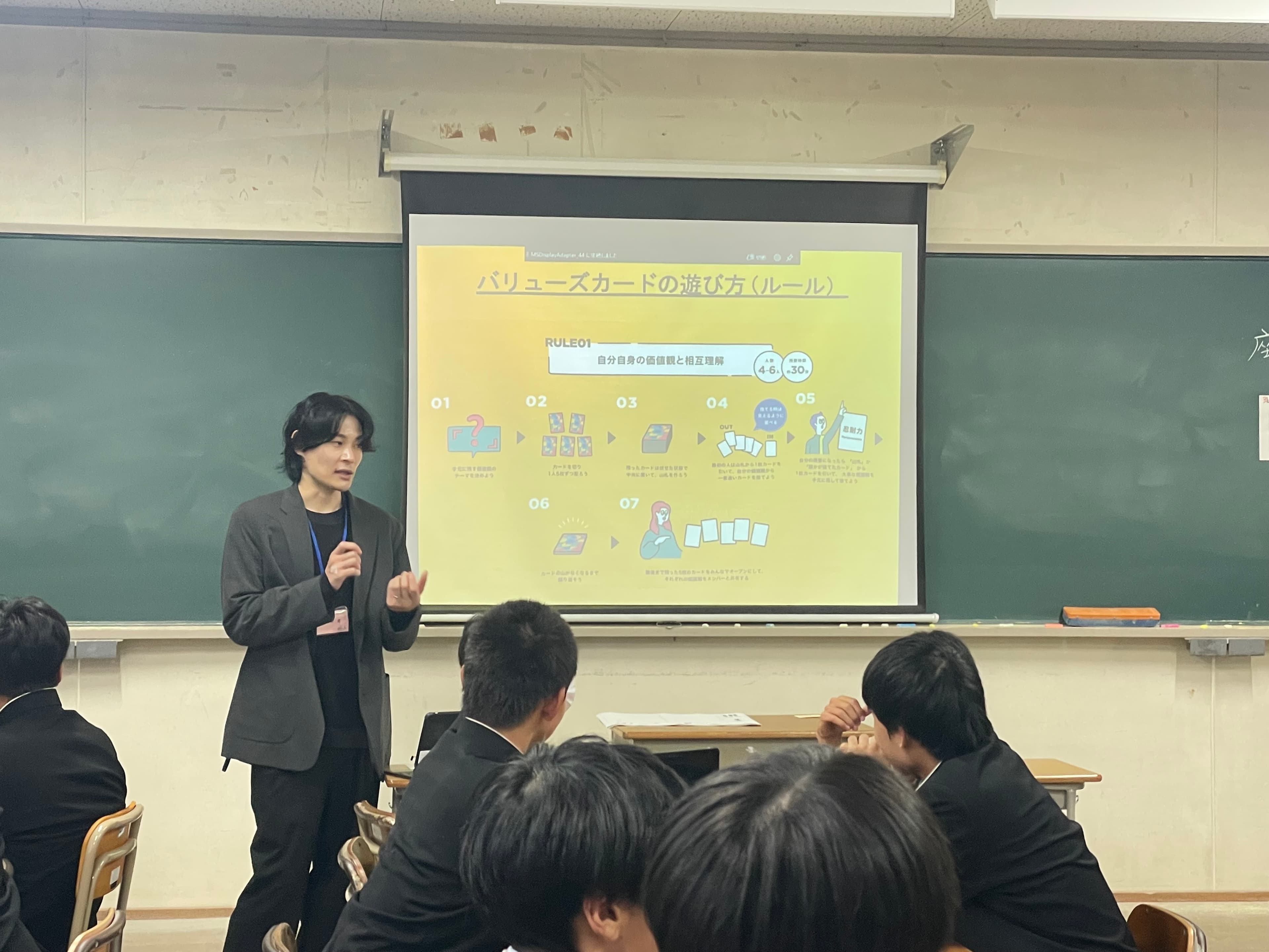 このバリューズカードは、ゲームという言い訳があることで対話が生まれ、相手を知れることに大きな価値があると考えています。ただ、我々も高校生向けに価値観ワークを行うのは初めてでしたので、Wevoxチームから2人が直接魚津高校に赴いて、事前ワークのファシリテーションも行わせていただきました。